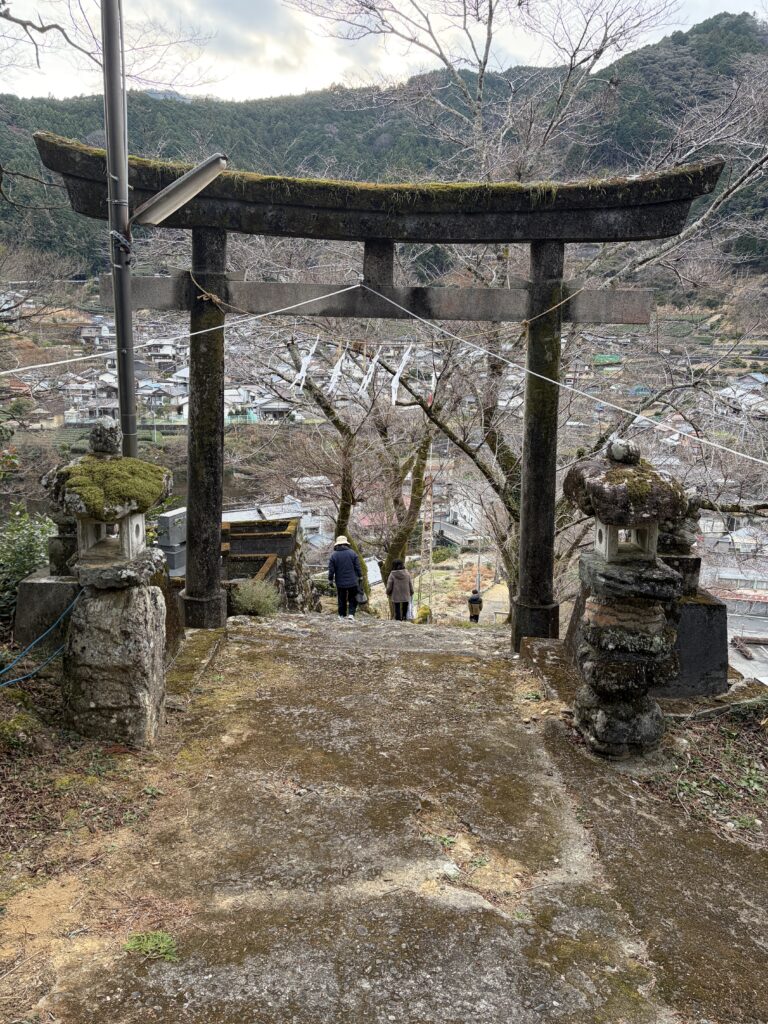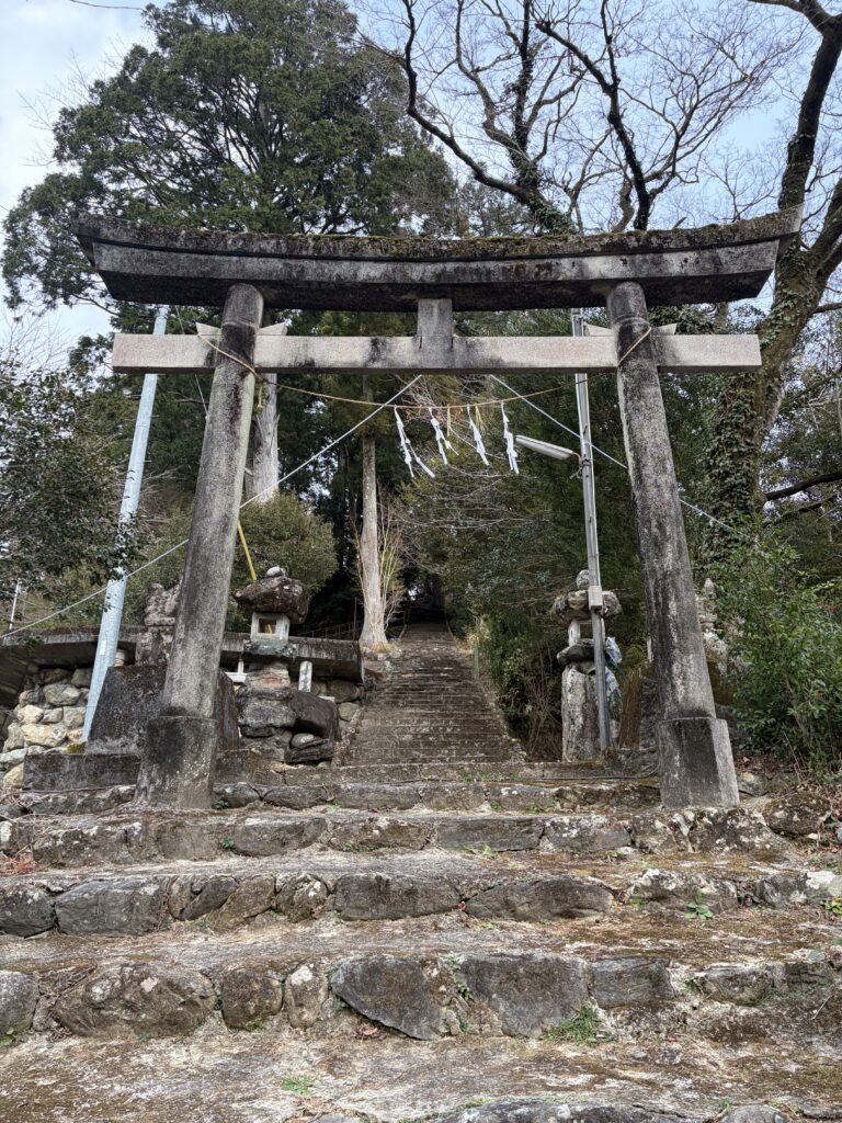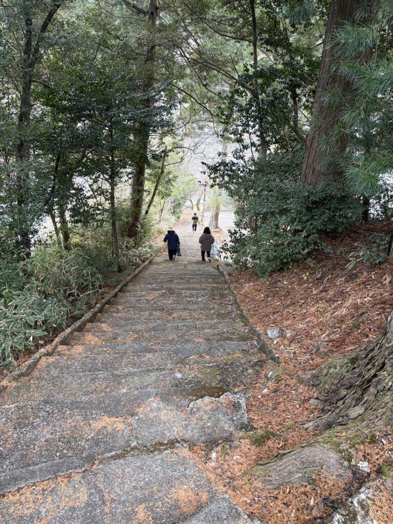 参道は急な石段で始まり、途中土のスロープがあってまた石段があります。