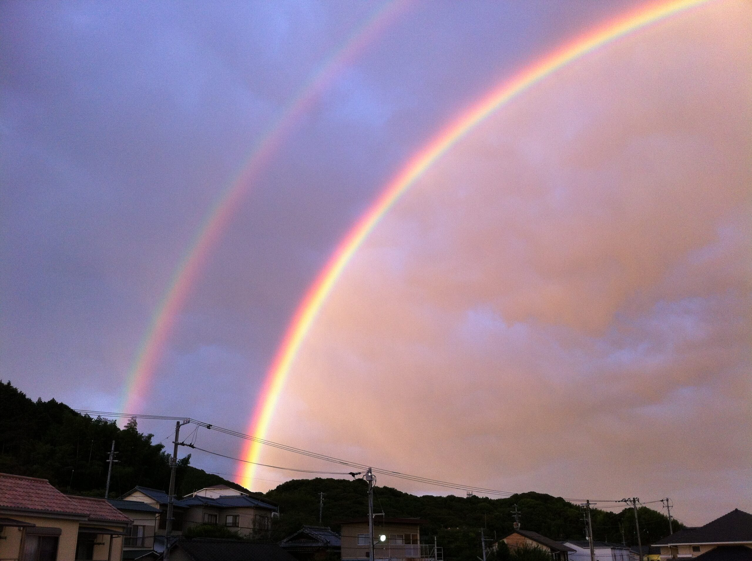昨日の雨上がりに二重虹がかかってたそうですが、残念ながら見ることが出来ませんでした。なので昔撮った二重虹をアップしました。